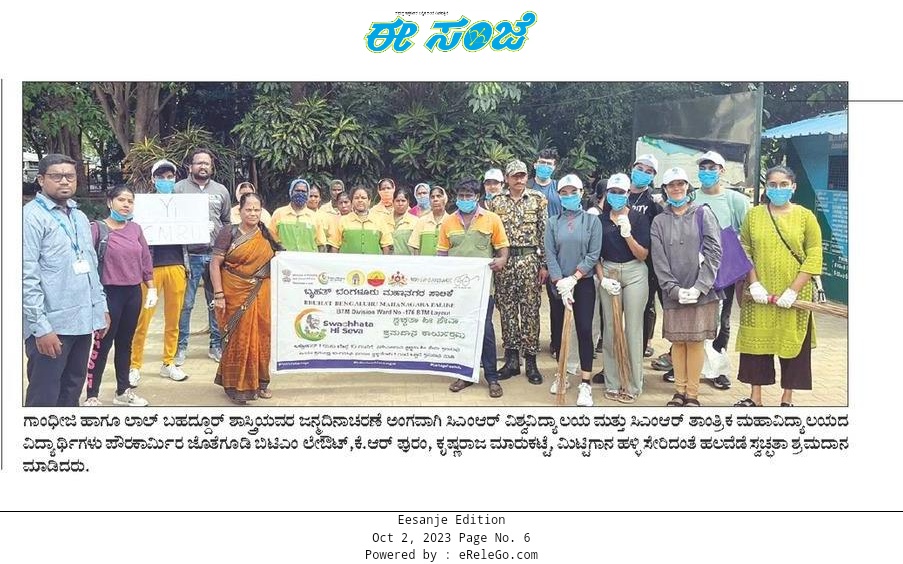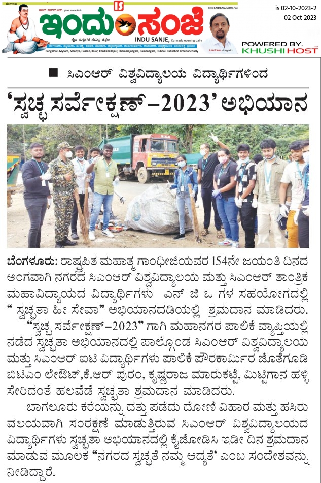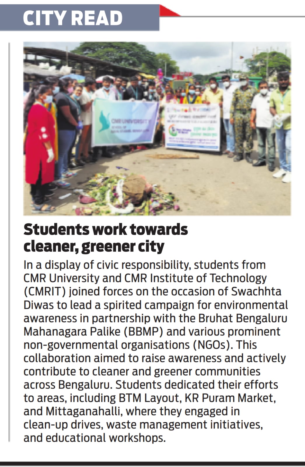 Students from CMR University and CMRIT take active participation in the Swachh Bharat Diwas Campaign, Transforming Bengaluru City.