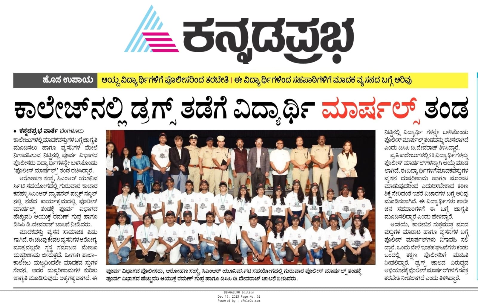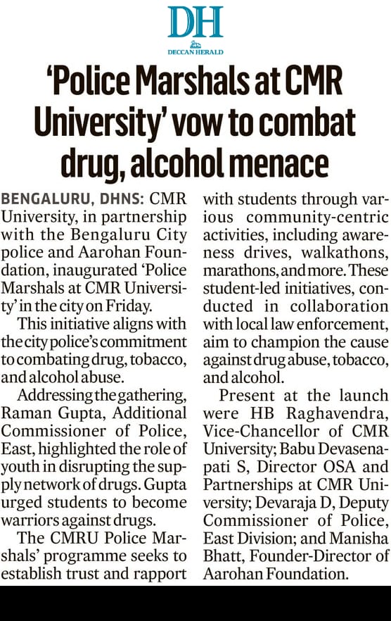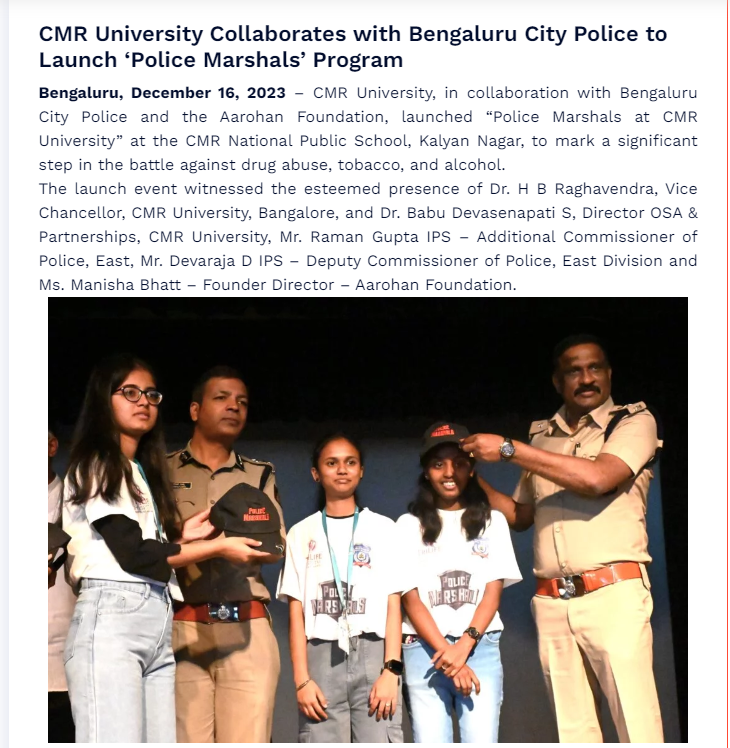 CMR University Collaborates with Bengaluru City Police to Launch ‘Police Marshals’ Program