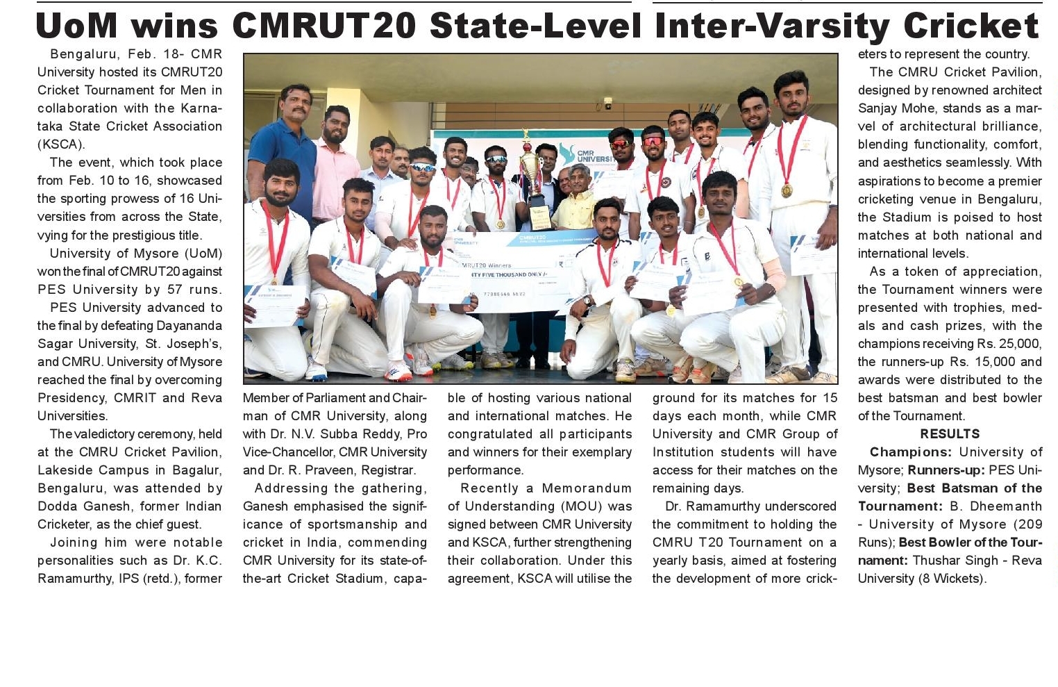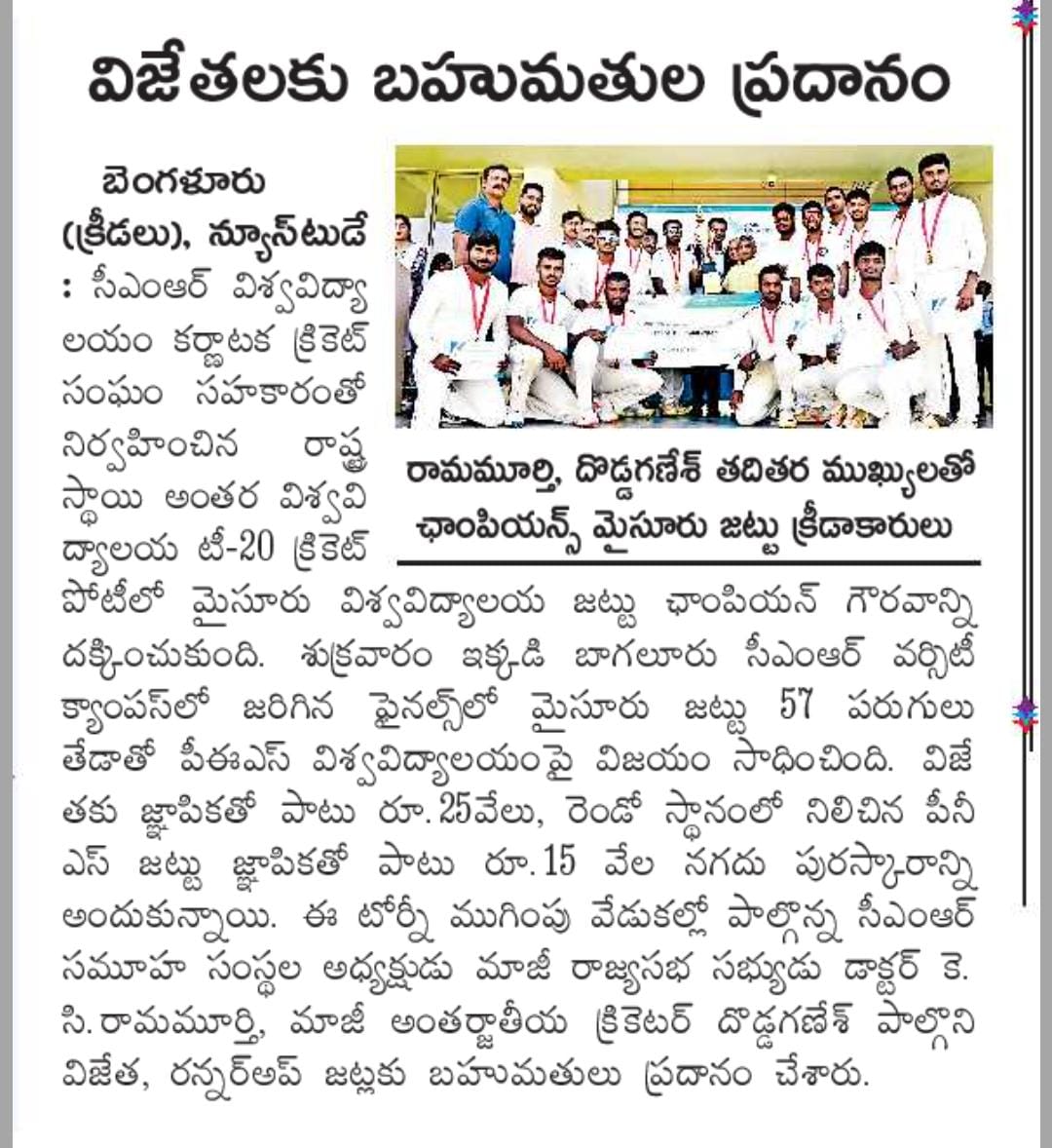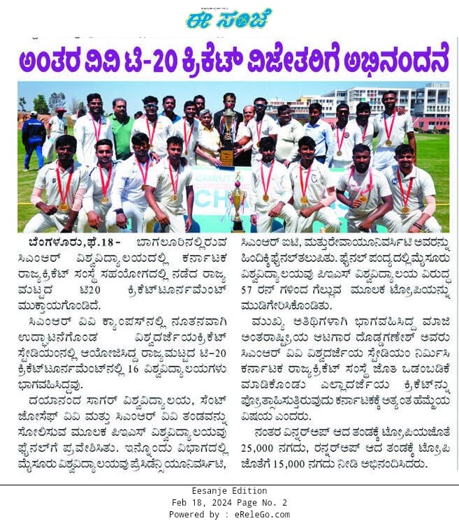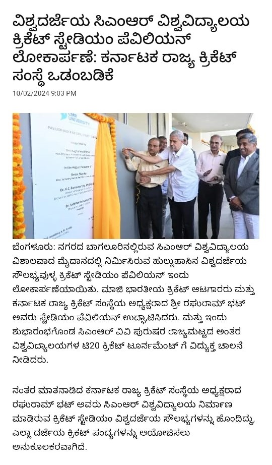 Featured in Public Tv |Cricket First | News21 | National Tv | Etv News | Playz | New Indian Express | City Highlights | Samyuktha Karnataka | Vishwavani | Udayavani | Kannada Prabha | Vijayavani | Hosadigantha | Eesanje | Indusanje | Sanjevani | Suvarna Times | Vartha Bharati | Vishwavaridhi | Bharatha Saradi | Eenadu | Andhra Jyoti | APN News | This Week India | Prajavani | Samyuktha Karnataka 1