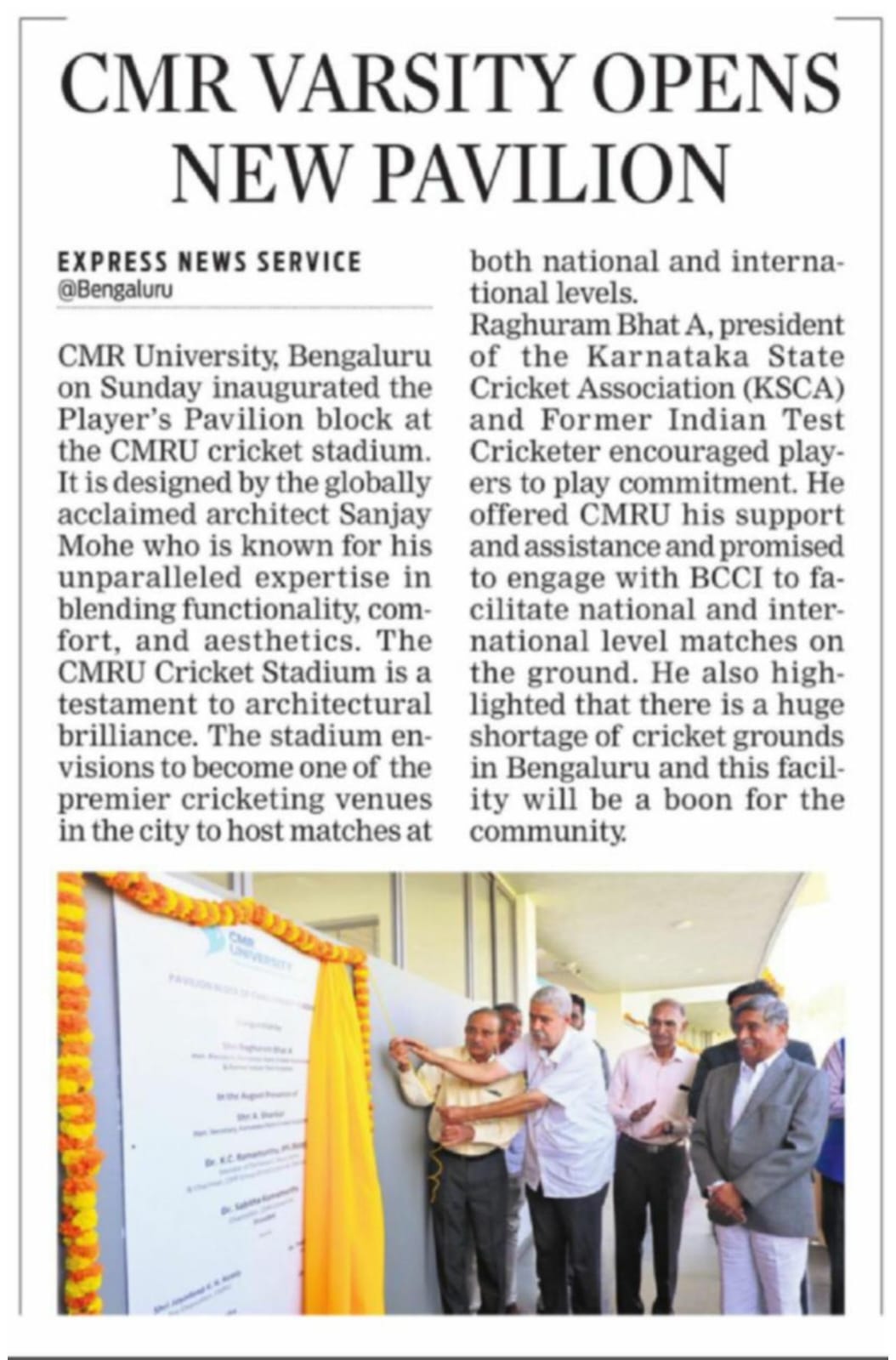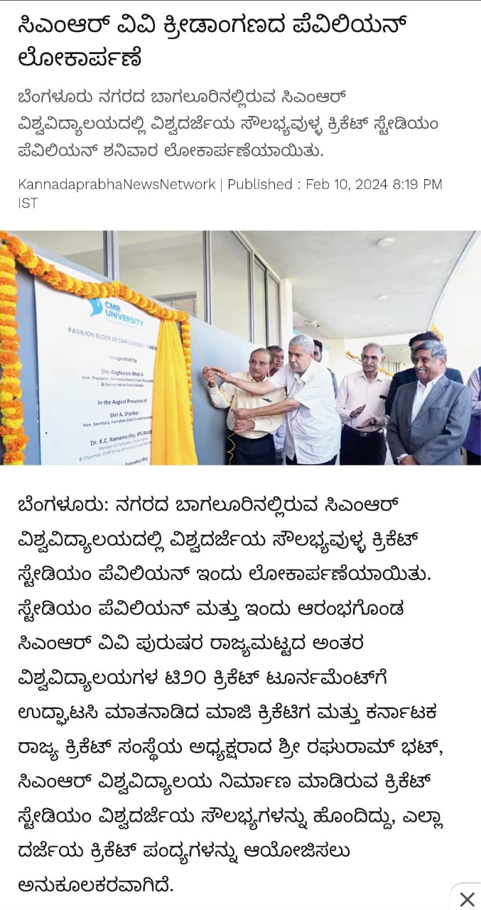 CMR University Bengaluru Unveils Player’s Pavilion Block of CMRU Cricket Stadium