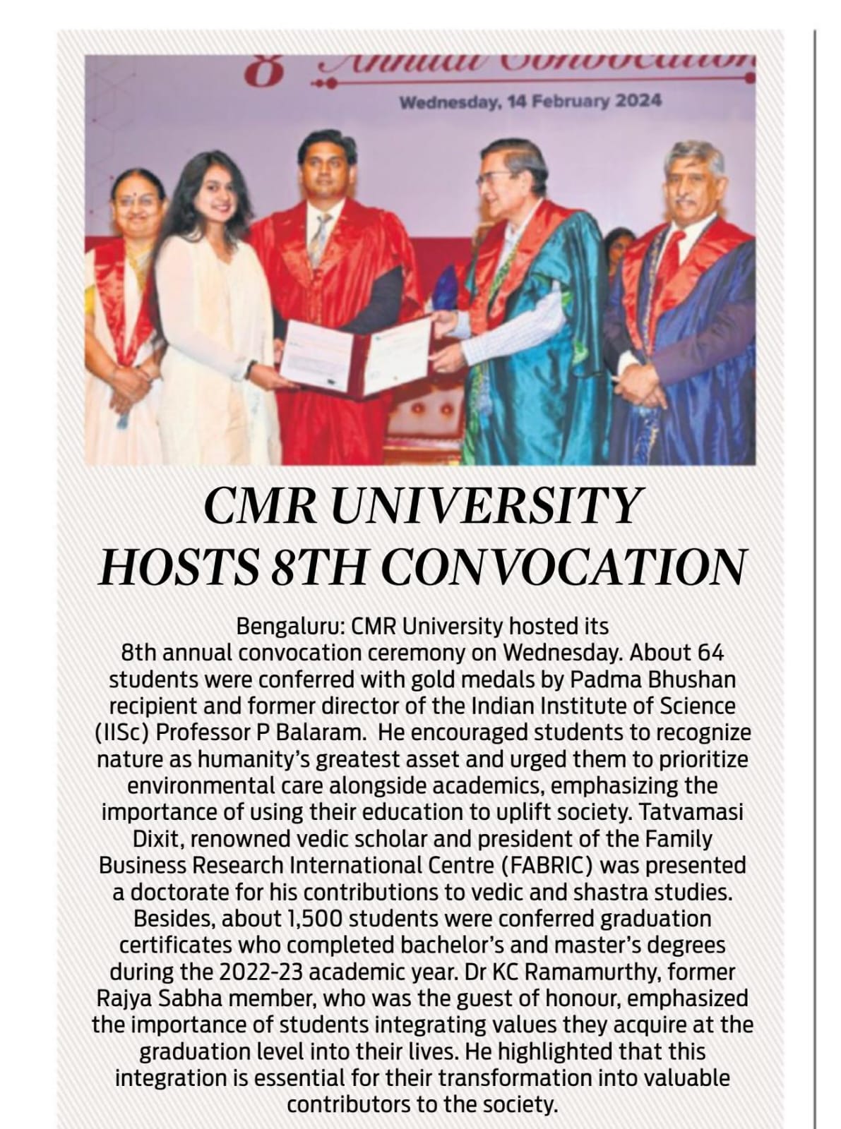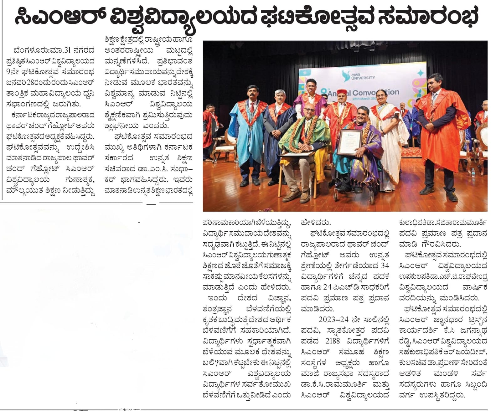 CMR University hosts 8th Annual Convocation