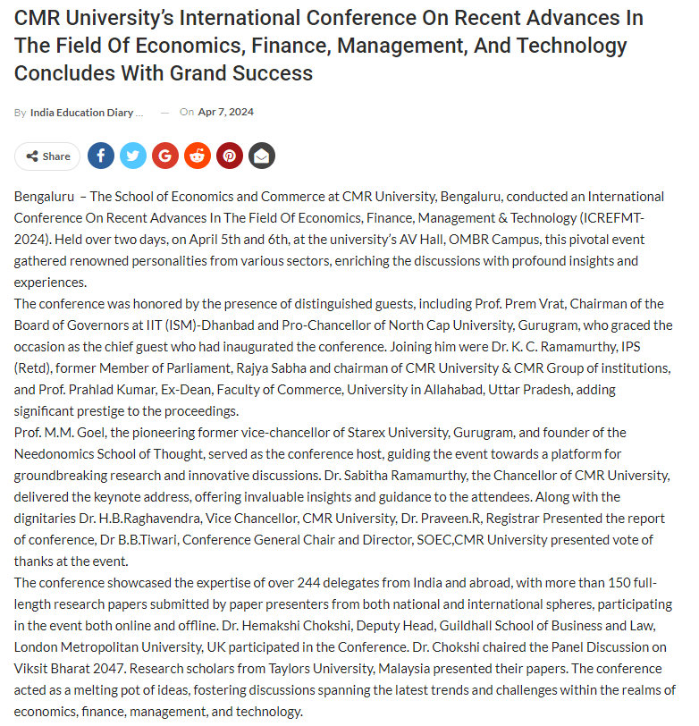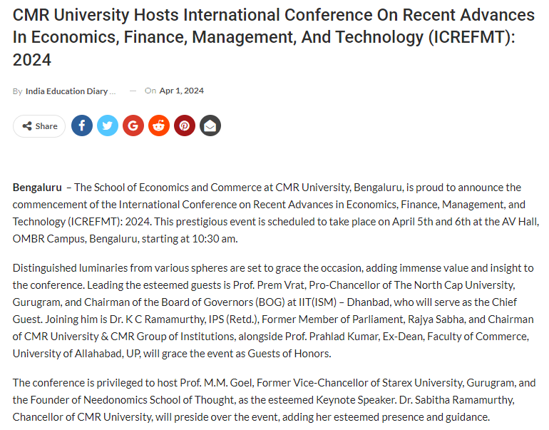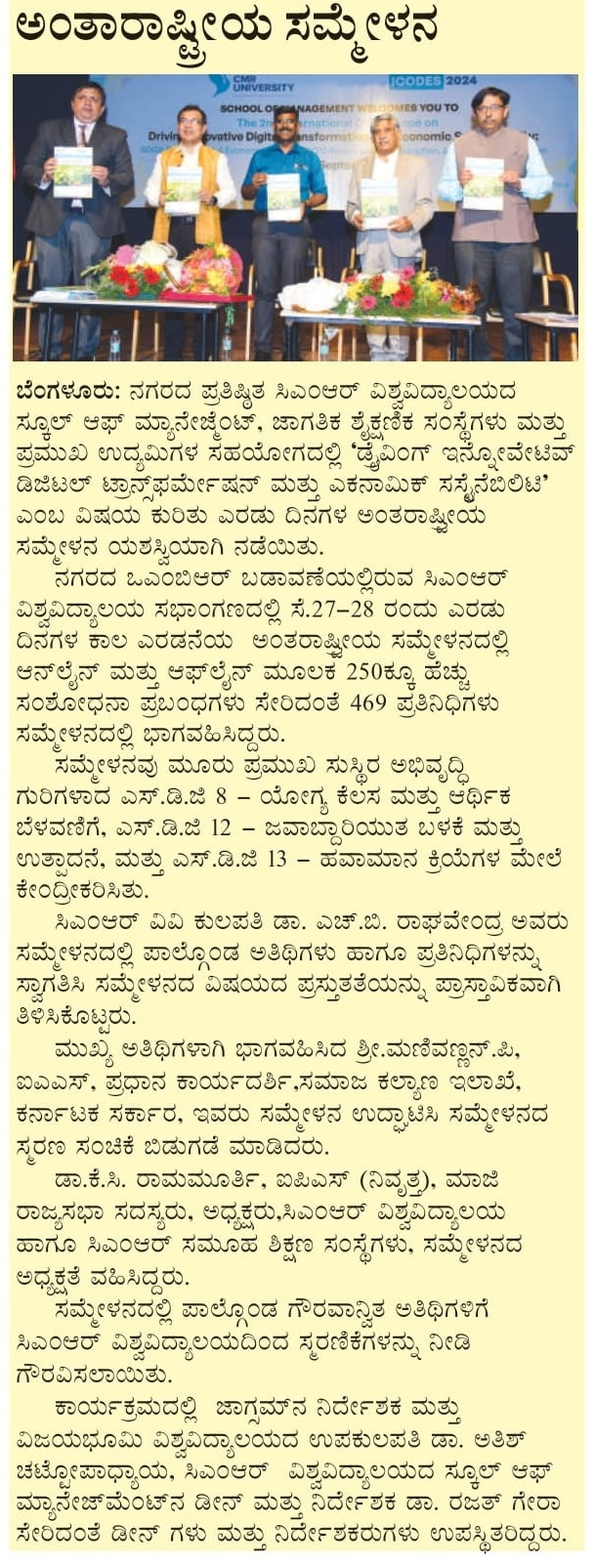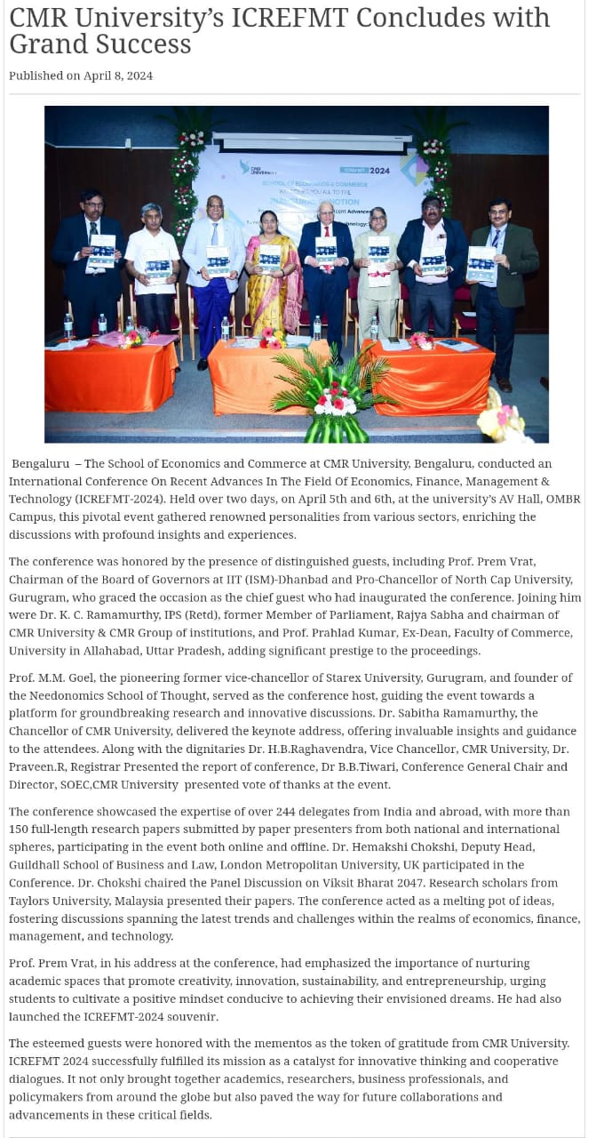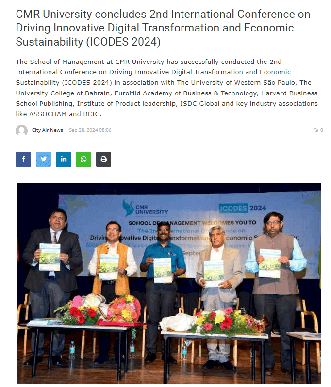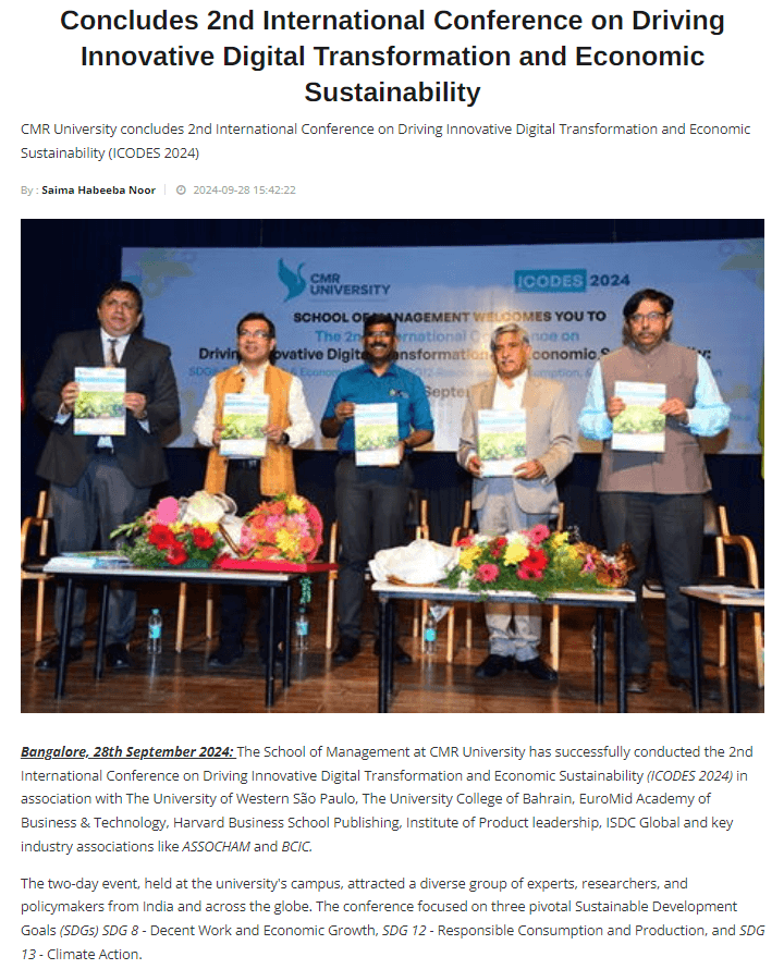 CMR University conducts 2nd International Conference on Driving Innovative Digital Transformation and Economic Sustainability (ICODES 2024)