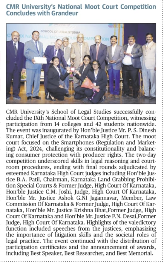 CMR University’s National Moot Court Competition Concludes With Grandeur
