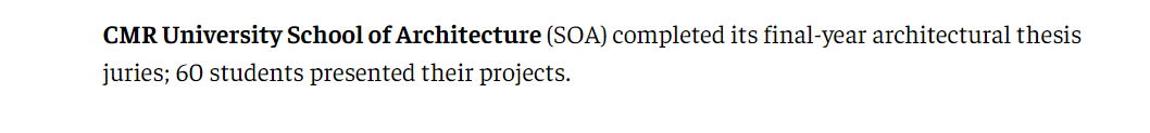 CMRU SOA Students Present Visionary Architectural Solutions for Bengaluru