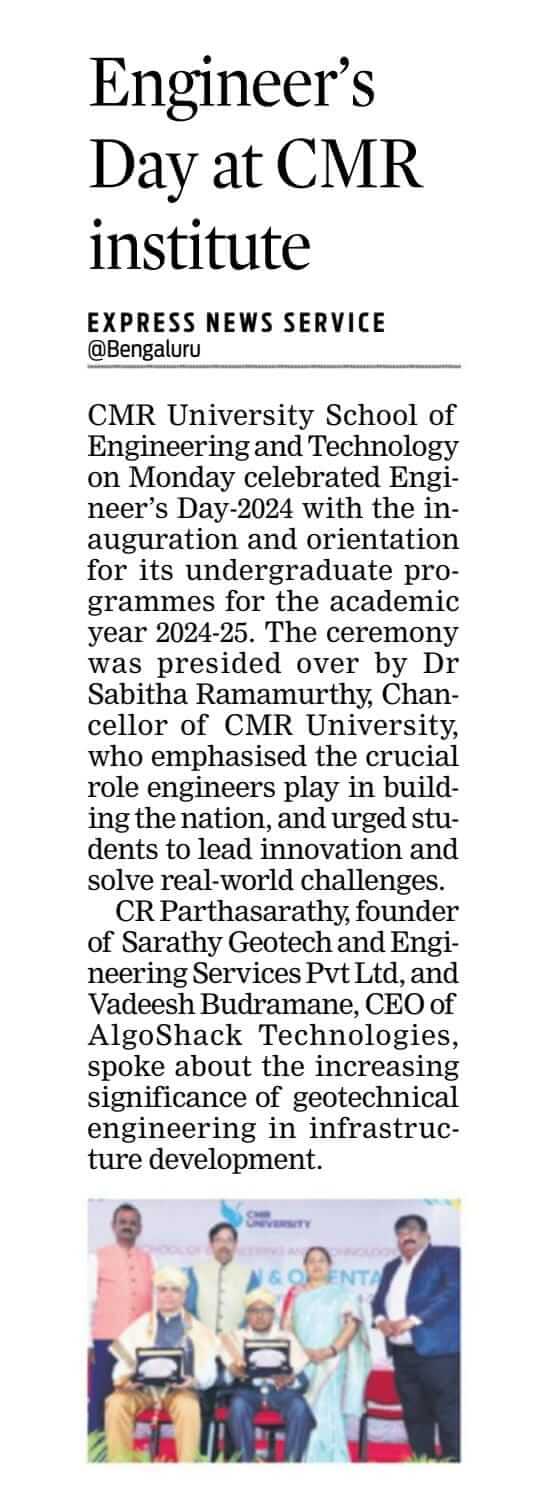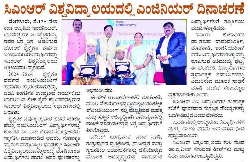 CMR University Inaugurates Engineering Programmes with Engineer’s Day Celebration