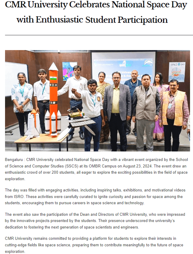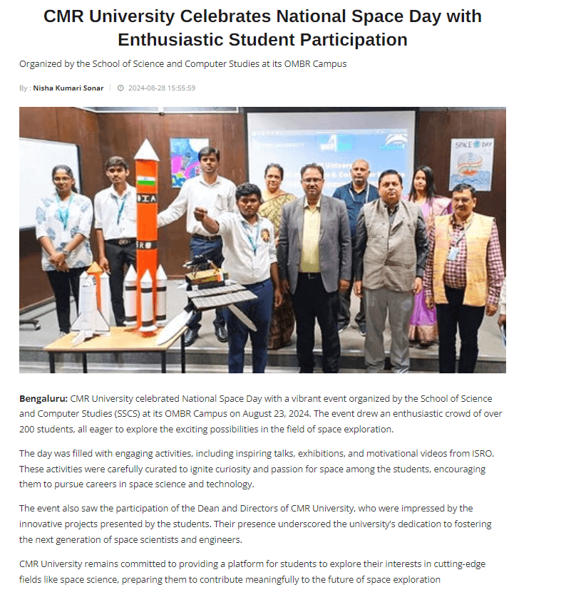 CMR University Celebrates National Space Day with Enthusiastic Student Participation