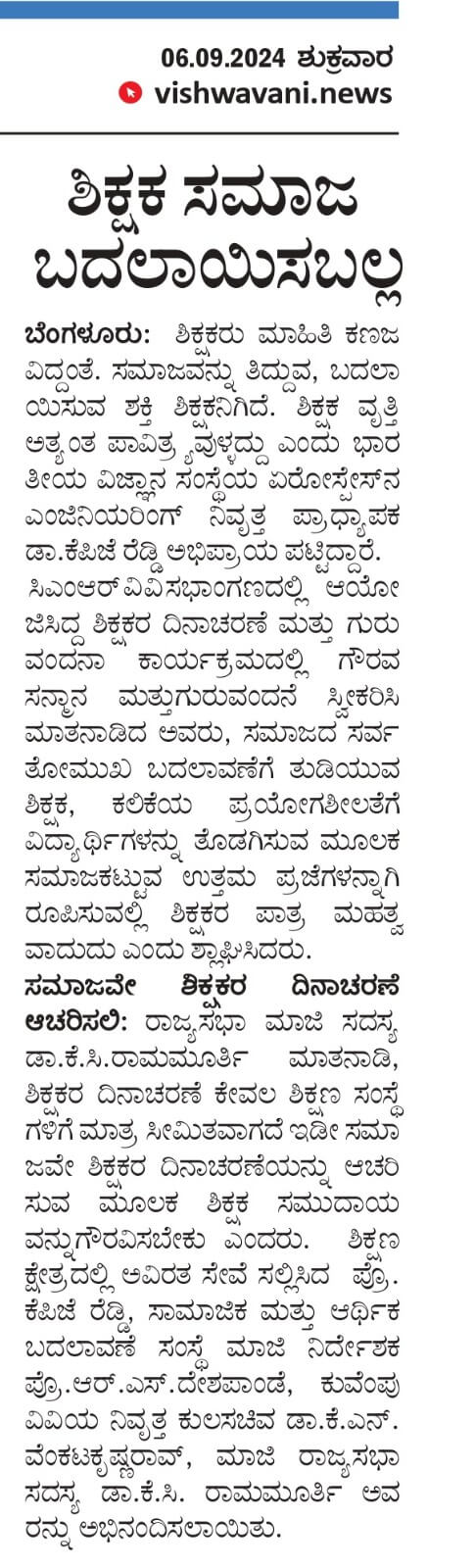 The Hindu | New Indian Express | The Hindu (Online) | The Hans India | APN News | City Air News | Education Matters | Samyuktha Karnataka | Vishwavani | Udayavani | Udayakala | Eesanje | Indusanje | Sakshi