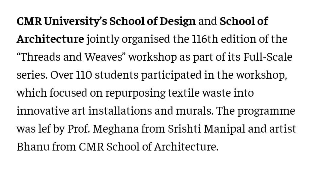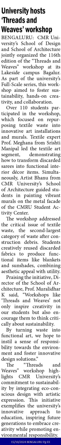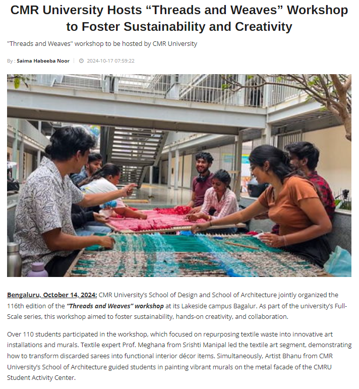 CMR University Hosts “Threads and Weaves” Workshop to Foster Sustainability and Creativity