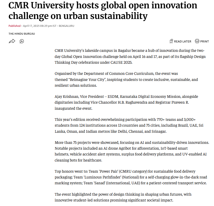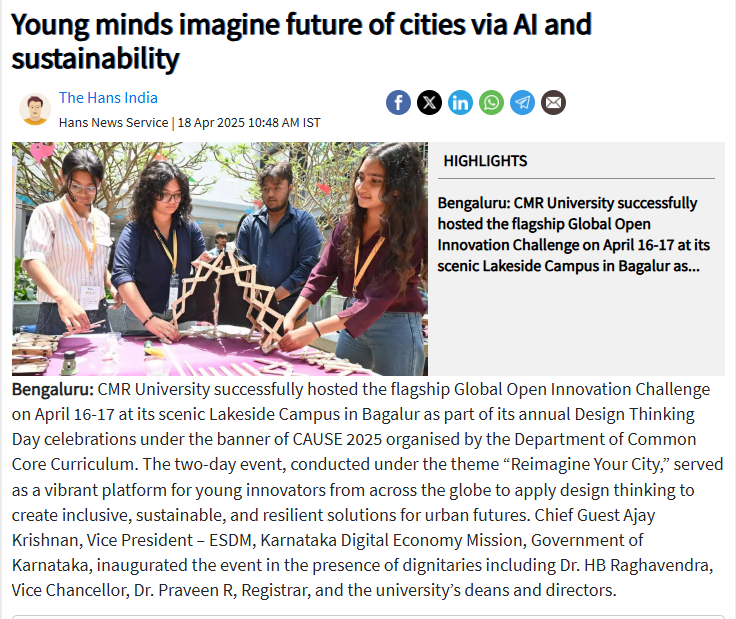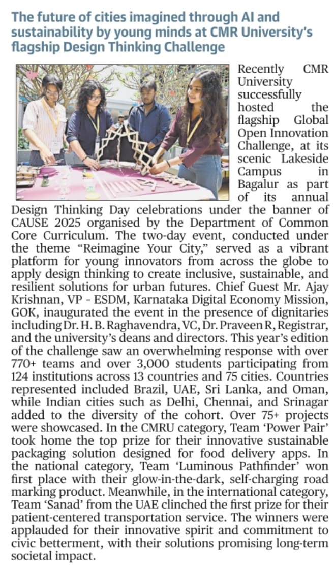 Young minds imagine future of cities via AI and sustainability at CMR University’s Design Thinking Day