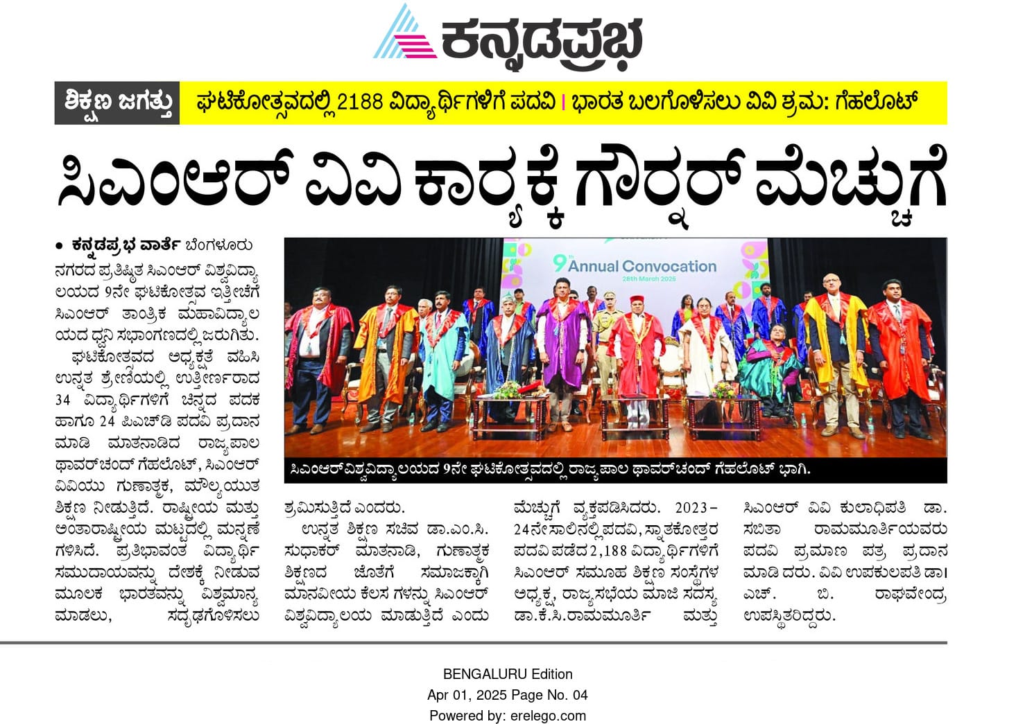 34 Gold Medalists and 24 PhD Awardees Honored at CMR University’s 9th Annual Convocation