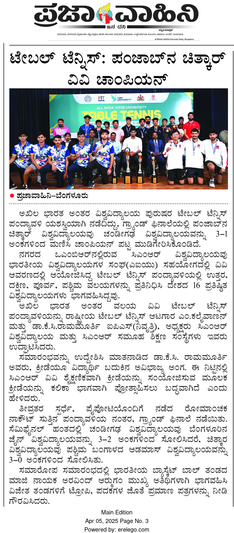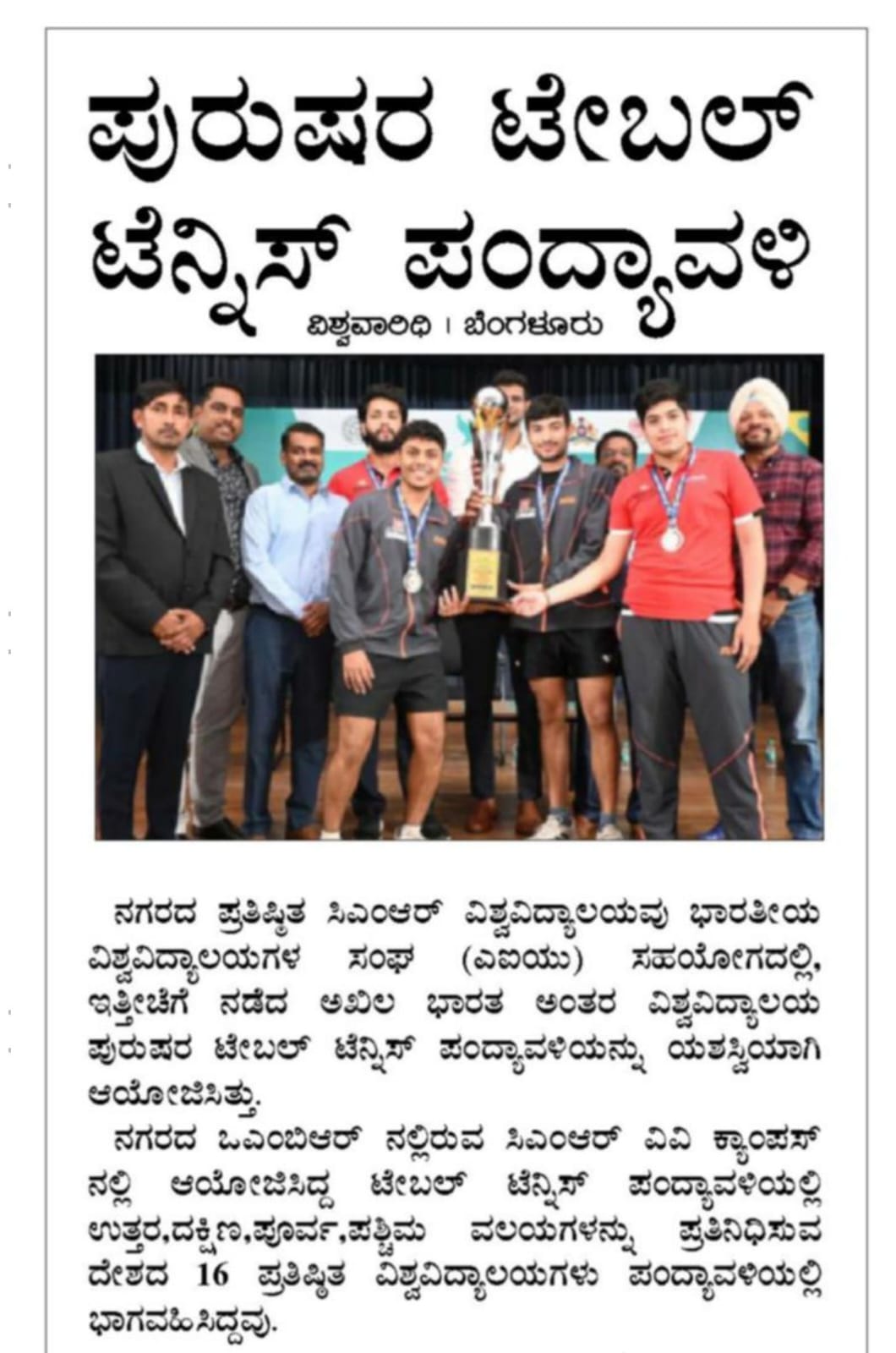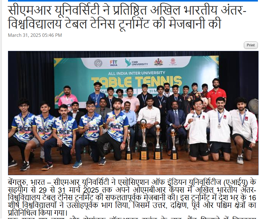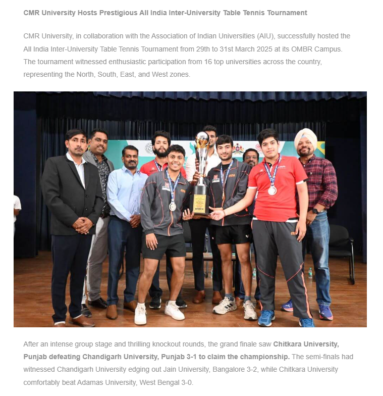 CMR University Hosts All India Inter-University Men’s Table Tennis Tournament