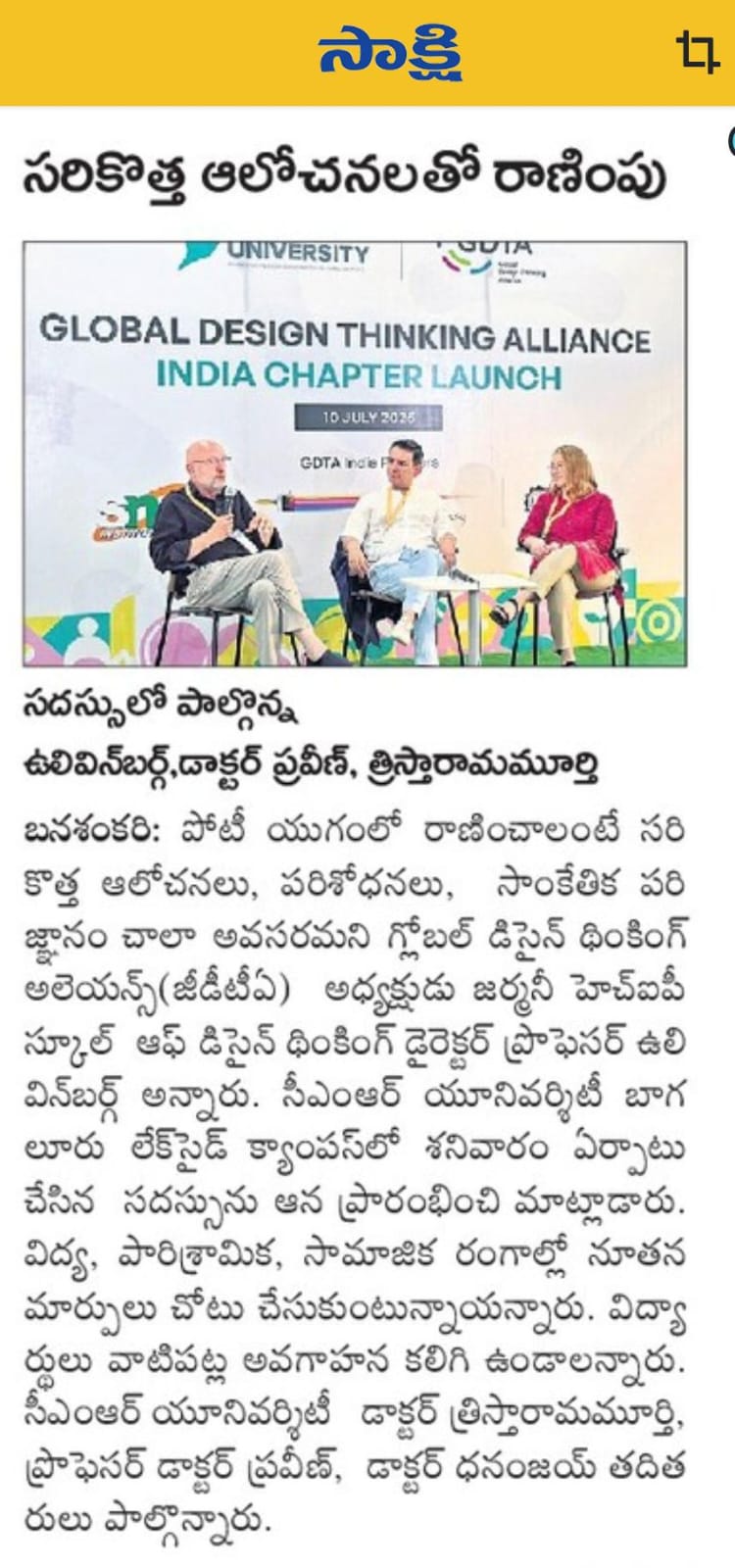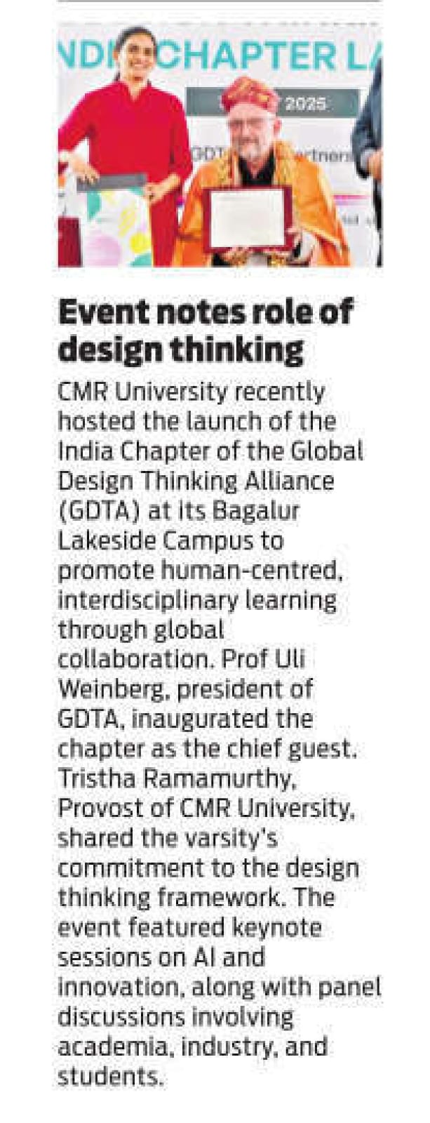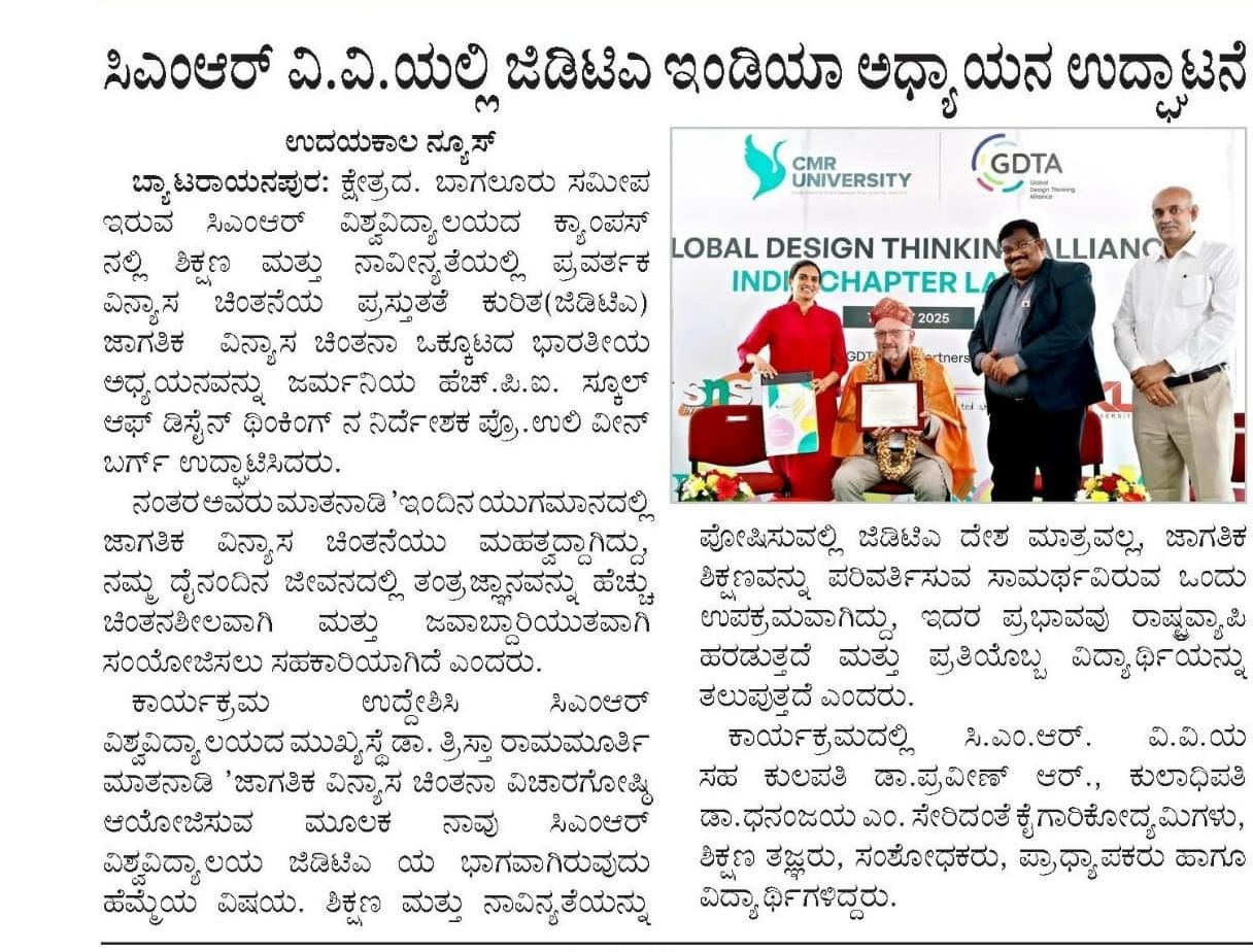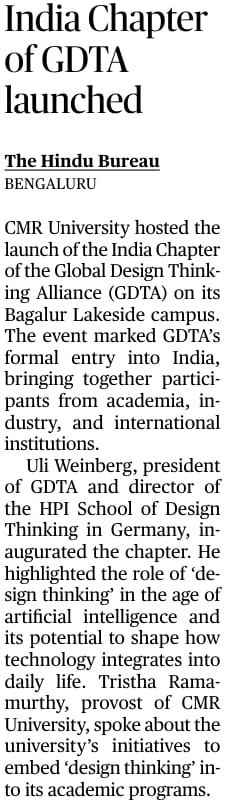 CMR University Hosts Launch of GDTA India Chapter, Pioneering Design Thinking in Education and Innovation