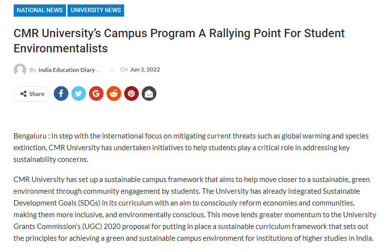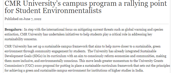 CMR University’s Campus Program for Student Environmentalists